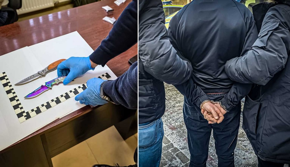 Mimo, iż sprawcy mięli zasłonięte twarze, policjanci ustalili ich tożsamość. Okazali się nimi 43-latek i jego o 6 lat młodszy kompan. Mężczyźni zostali zatrzymani w mieszkaniu znajomej. W trakcie przeszukania funkcjonariusze znaleźli między innymi część ubrań, w które sprawcy byli ubrani w czasie rozboju, pistolet gazowy, naboje CO2 i dwa noże. Śledczy ustalili również, że podejrzewani mężczyźni pomieszkiwali także w innym miejscu. Tam w trakcie przeszukania znaleźli resztę ubrań napastników oraz inne przedmioty.